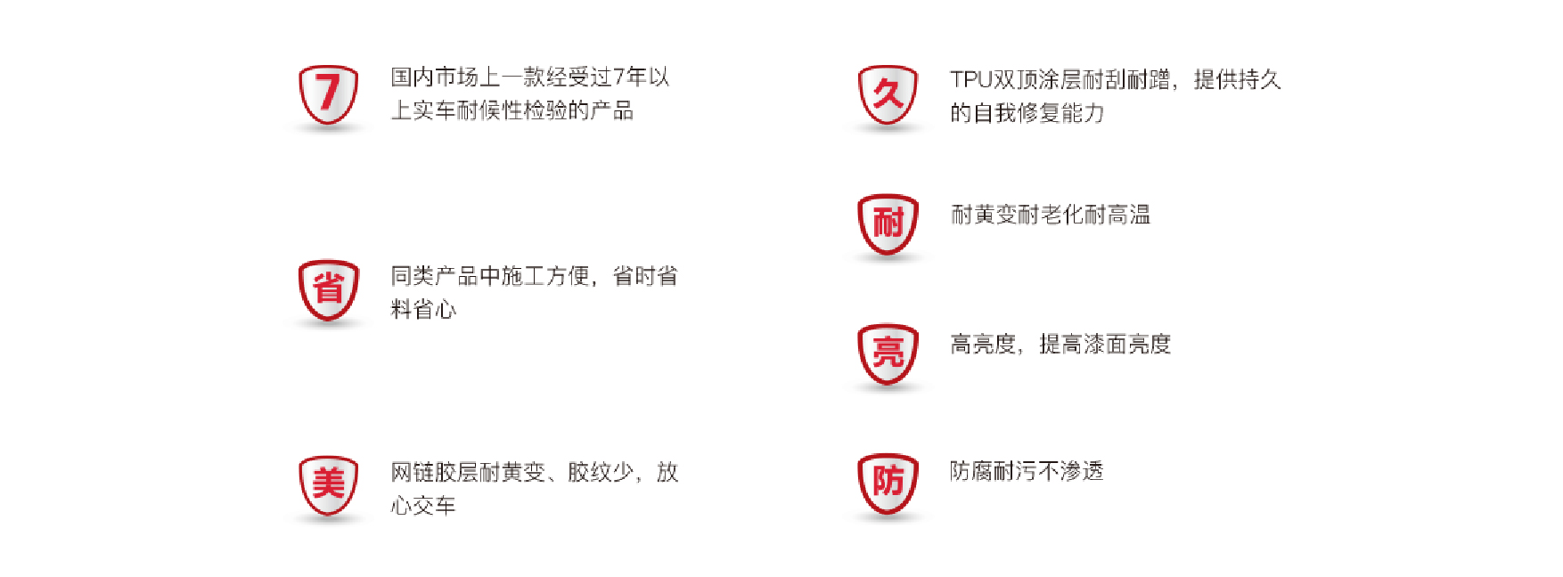 XP-PFZL-L系列美国进口TPU材质,厚度9mil,十年质保。防剐蹭、防恶意划漆,有效保护车漆。独有的划痕修复图层,加热漆面划痕自动修复。